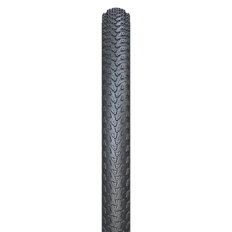 Блочный объемный протектор, усиливает связь между велосипедом и дорогой. Уникальный дизайн с направленными в сторону вращения многогранными шашками не только повышает эстетику шины но, что более важно, улучшает сцепление шин с дорогой, увеличивает проходимость и повышает безопасность на высокой скорости